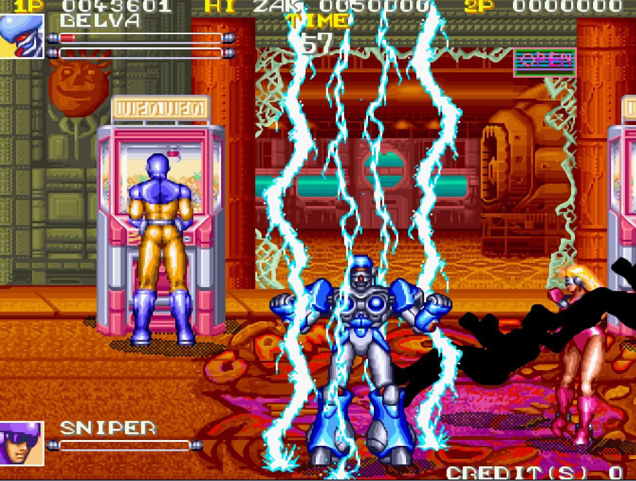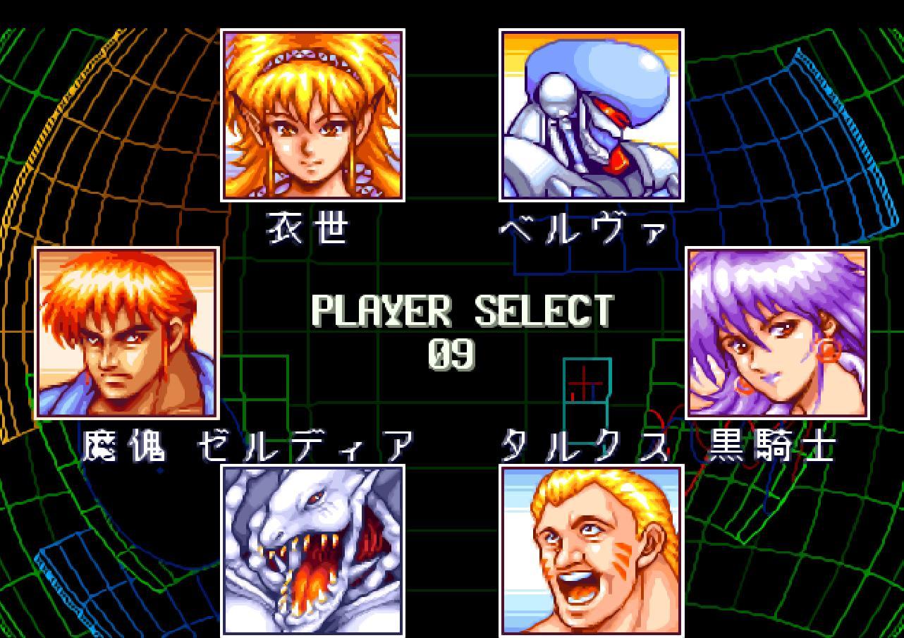 街機版的《電神魔傀》,可選人物有六人,但技能特效總感覺沒有SFC的好。