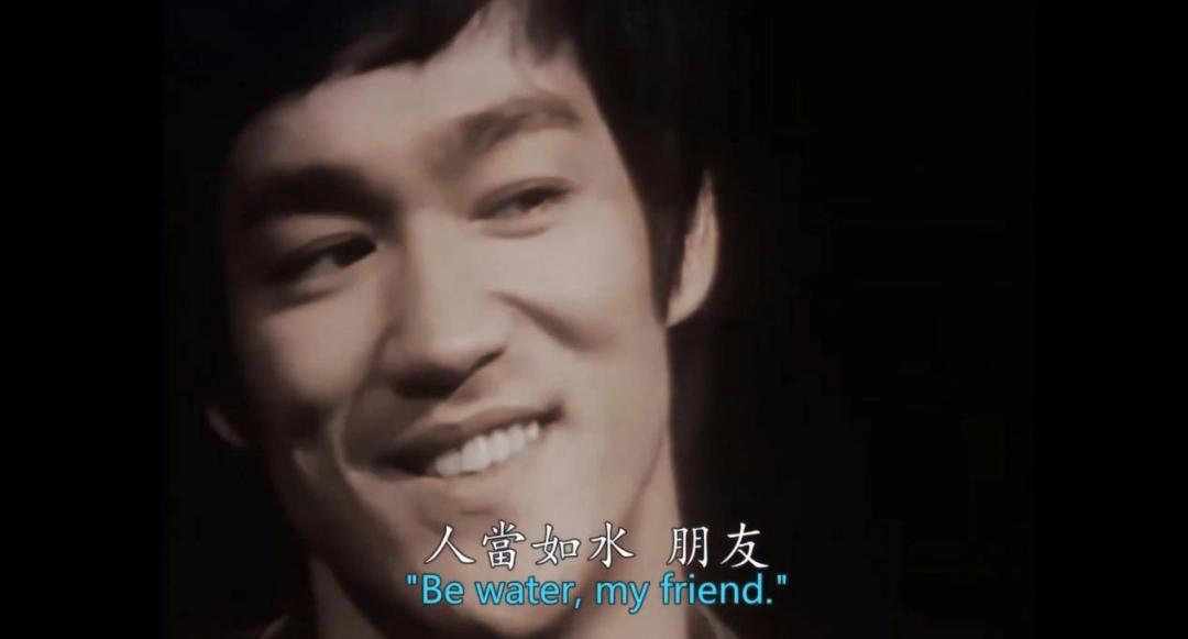 Now you put water into a cup, it becomes the cup. You put water into a bottle, it becomes the bottle. You put it into a teapot, it becomes the teapot. Now water can flow, or it can crash.(入杯,即爲杯,入瓶,即爲瓶,入壺,即爲壺。靜可細水潺流,動可駭浪滔天。)