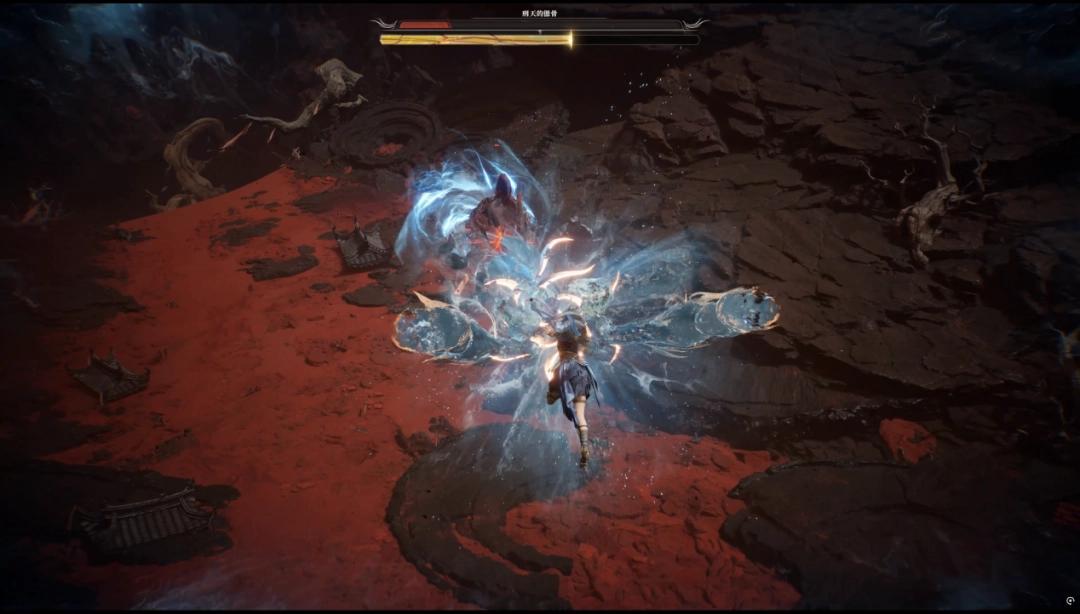 從預告片中我們可以看到,本作主角“靈珠子”有着非常強的角色性能,無論是閃避距離、格擋窗口,都顯得十分寬鬆,同時有着極強的位移能力和滯空能力,尤其是滯空能力。在預告片後半段主角與刑天的戰鬥中,我們可以看到主角在半空完成了一套相當華麗的連招,將敵人挑空打完一套過後,又變化成水球繞行到敵人的正面,打出了另一套連段。