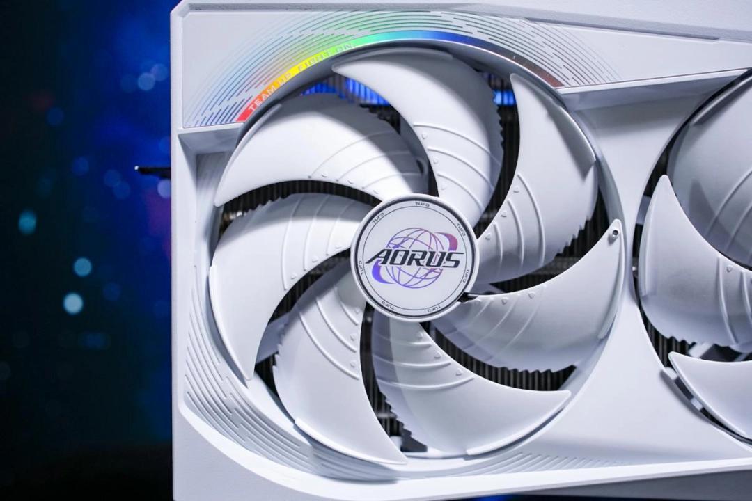 顯卡配備了三個主動散熱仿生風扇,其葉片設計靈感來自老鷹翅膀的空氣動力學,能有效降低風阻和噪聲。而爲了進一步提升顯卡的導熱性能,技嘉給這張顯卡採用了複合金屬導熱硅脂輔助散熱,它結合了液態金屬的高導熱性與硅脂的易用性,能快速將GPU的溫度傳導至散熱器,大幅提升散熱效率。同時,它還用上了服務器等級的高性能導熱凝膠,用於冷卻VRAM和MOSFET等重要零組件,用戶還可使用附贈的額外風扇增強進氣,配合顯卡背部的大型均熱板和複合式熱管——它們共同構成了這張技嘉AORUS GeForce RTX 5080 MASTER ICE 16G顯卡的風之力散熱系統——讓顯卡的散熱能力進一步提升,從而更從容地應對各種高負載高發熱的使用場景。