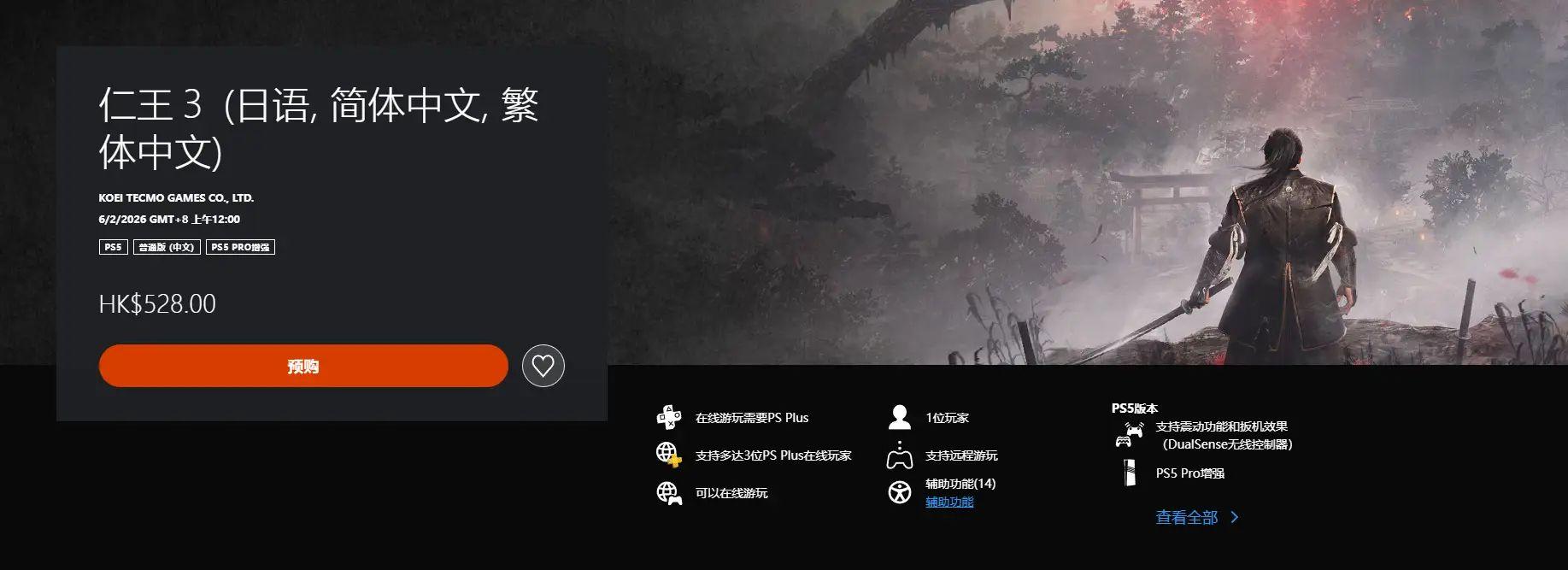 若你此前從未接觸過《仁王》系列作品,不妨免費下載Demo體驗一番——PC與PS5版均提供免費Demo,且體驗版存檔可繼承至正式版,支持最多3人在線聯機遊玩。Demo包含序章及第一張地圖,內容量充足。但需注意,體驗版僅限在線遊玩,未聯網狀態下無法啓動。目前其在PS商店的玩家評分達4.45分,五星好評率79%。
