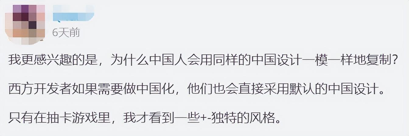 在國內市場對許多遊戲越來越重要的同時,那些在遊戲中加入更多中國元素來迎合中國玩家的行爲——比如“中國風新年皮膚”,也成了海外玩家眼中的一些文化現象。而通過這個現象,他們也在逐步地瞭解着我們的文化,並像我們一樣,開始逐漸厭惡起了標籤化、模式化的膚淺元素運用,想要看到更具備我們文化特色的內容出現——