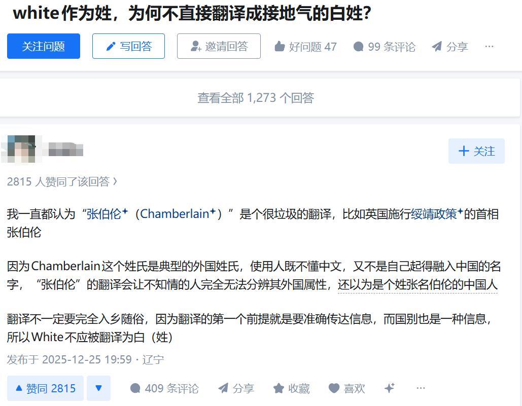 像之前知乎給我推了個問題:“爲什麼White這個姓不翻譯成白,而是翻譯成懷特”。
