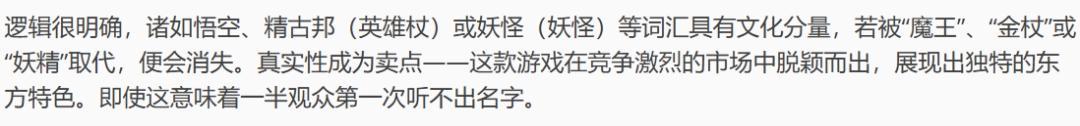 你說那些“Wukong”“WUCHANG”“Jinyiwei”能不能起到文化輸出的作用,現在大概率是不能的——因爲,這些對外國人來說確實沒有意義,他們也無法理解原本的意義。但它們只要一直出現,一直被記住,就會留下自己的影子,變成一種東方文化的氛圍與“氣味”……到最後,甚至可能像“Kung Fu”一樣,逐漸演變成新的詞彙。