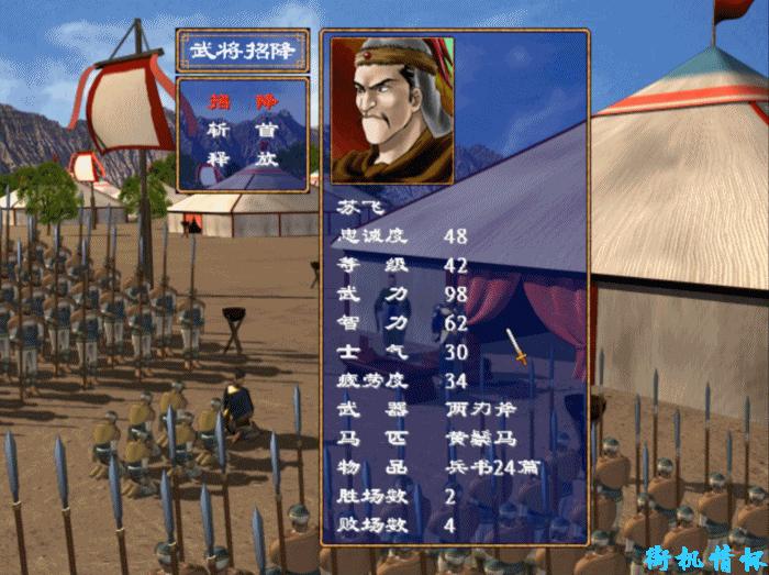 以前很多人依賴祕籍,後來發現遊戲中居然可以利用BUG無限進行挑戰後基本上就不使用祕籍了。操作方法很簡單,在招降界面點擊武器和馬匹之間,這裏有一個隱藏的按鈕,只要點進去就能再次挑戰。原本忠誠度比較高的人,在經過幾輪戰鬥之後基本上都願意投誠了。