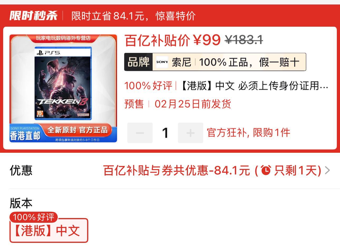 PS5港版中文遊戲《鐵拳8》99元全新包郵