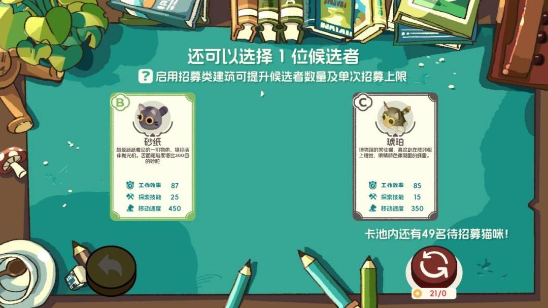 起初,遊戲流程中的我還在不斷探索UI交互,試圖找到貓貓們的個人體徵,試圖多招幾隻貓貓好讓它們輪班。可玩過了一個小章節,我才意識到自己要做的僅僅是擼貓。但哪怕玩家放置着這些小傢伙不管,遊戲內也不會有任何的消極性反饋。