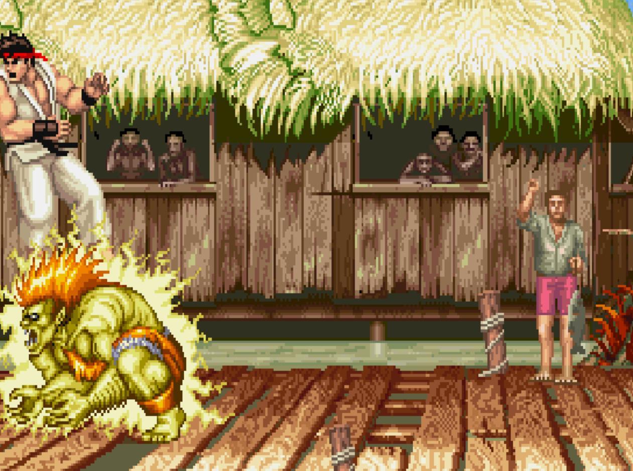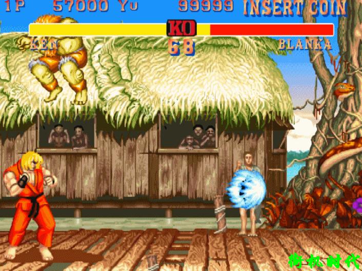 布蘭卡在這個版本中非常勇猛,就算你使用升龍拳他也不怕,他直接衝過來使用電擊。這次就沒有倒地的效果了。玩家在空中就被活活電死了,沒有機會倒地的。要是你擋住的話,同樣也是直接死。