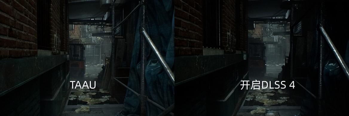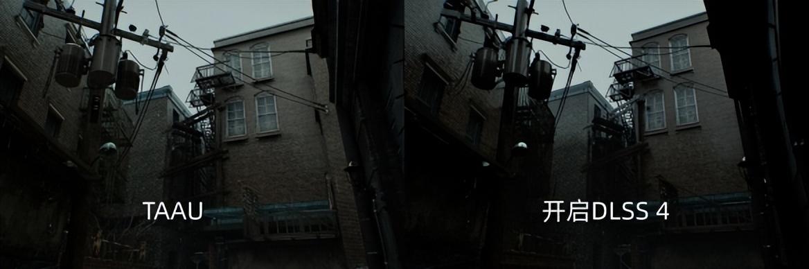 從對比圖中我們不難看出,在DLSS 4 幀生成的加持下,顯卡能夠通過 AI補幀的方式精準補全遊戲畫面中銜接不足的幀數 畫面,這使得DLSS 4的運用能夠大幅降低高分辨率、高畫質設定下的硬件負載,即便是在配置拉滿的3A大作場景中,也能爲玩家帶來遠超原生幀率的流暢表現。