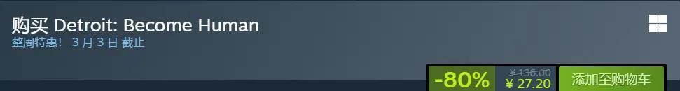 -80% Steam售價:136 折後:27(史低13.6)