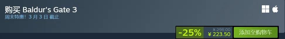 -25% Steam售價:298 折後:223.5(史低)