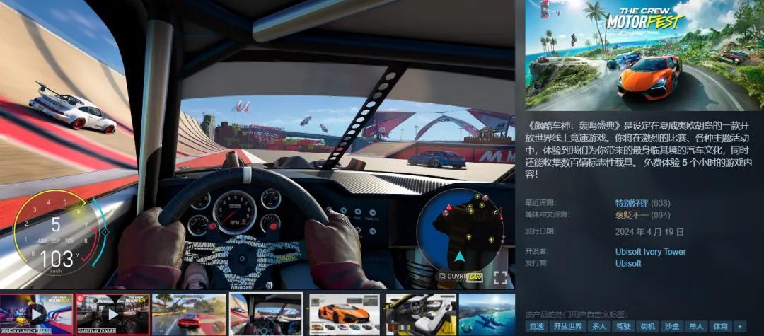【短評】:駕駛手感一般,但是育碧出品量大管飽。玩法和美術沒問題,稍微喫點配置。除了這些都是優點,包括立體的地圖,不俗的造景,豐富的車輛,以及相當不錯的賽事清單,當然還要算上它的新史低骨折價。