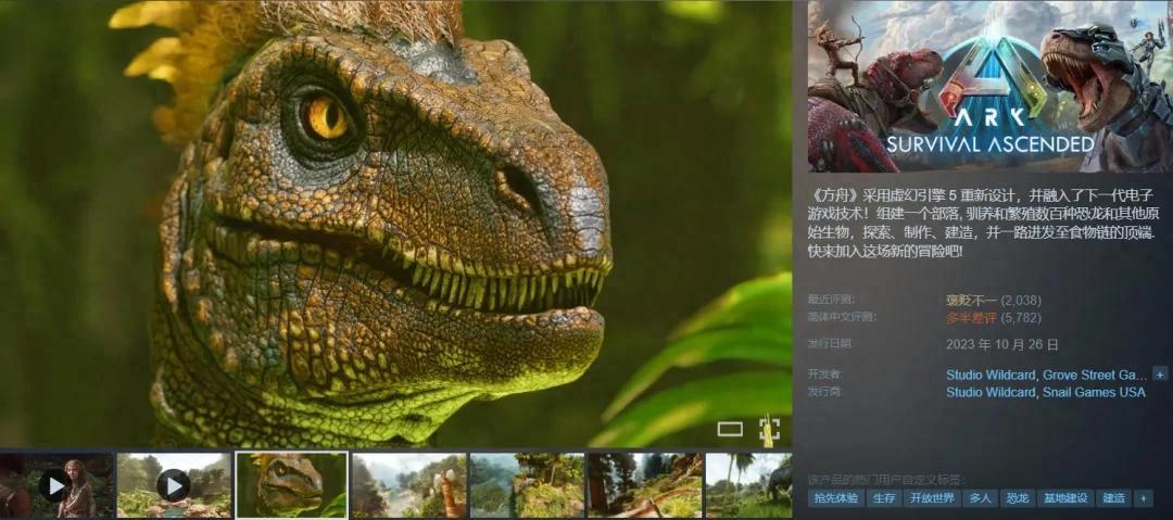 【短評】:好評純是被優化拉低了,其他方面真的不差。尤其看風景,比一代更加身臨其境,而且同類SOC真沒競品,對於喜歡恐龍時代的玩家更是加分。關於售價,沒錯兩百塊的飛昇就是一坨,一百塊的飛昇就是第四大沙盒經典,那麼請問,六十塊的飛昇你該叫什麼?