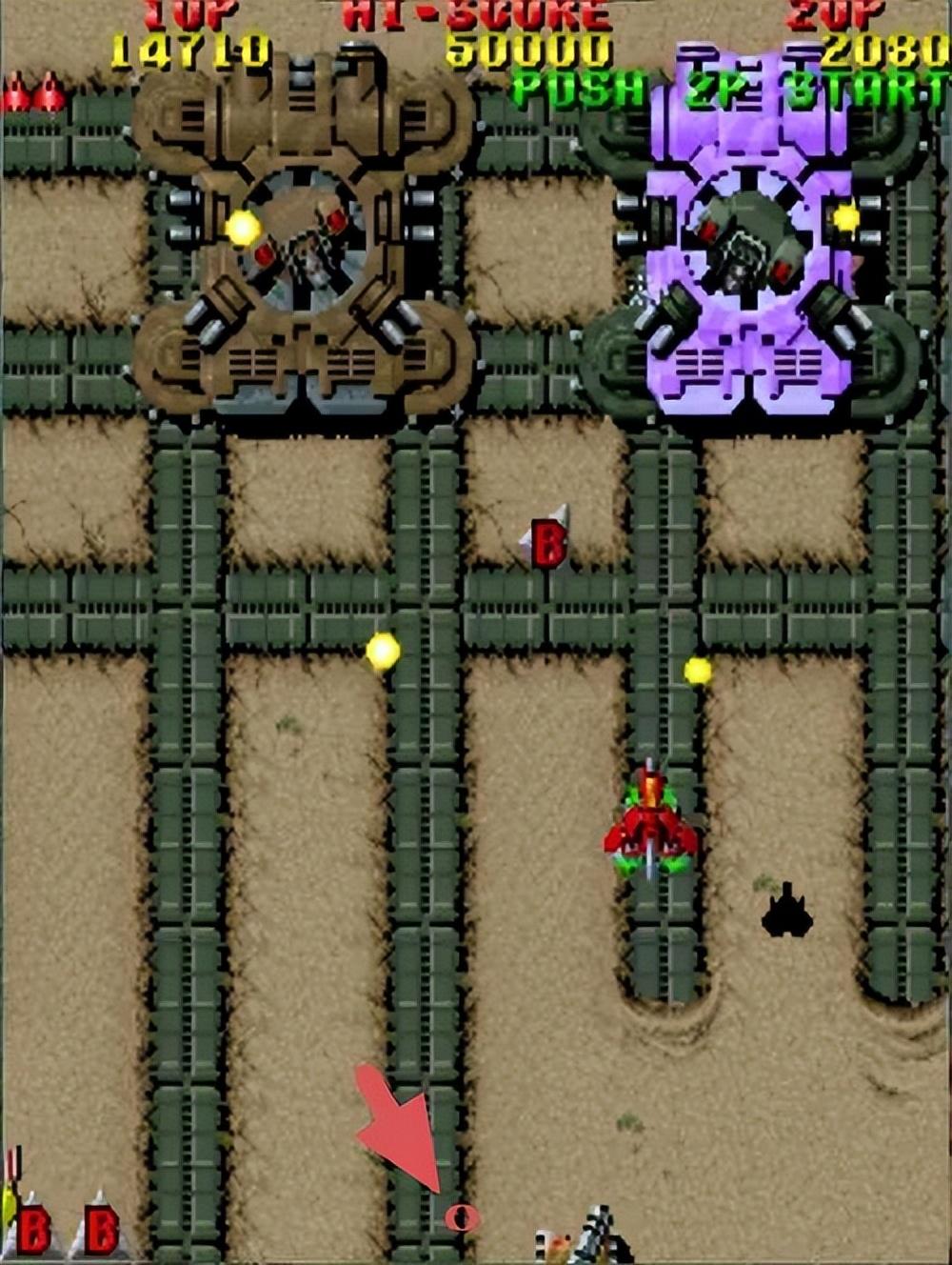 吶,如下圖,《雷電》一關BOSS場景的天然角度就是這裏,只要你把飛機放在這裏,閉上眼睛都可以打死BOSS了。