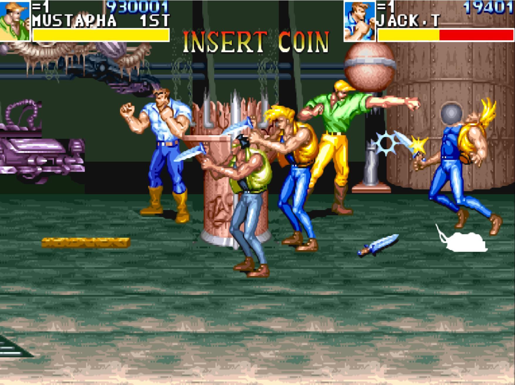 《快打旋風》最初的版本中,雜兵們是不會打箱子的。因此只要站在上面就百分之百安全了。當年很多高手帶菜雞玩家就是這麼操作的,菜雞直接跳到箱子上面去,然後高手用擺拳將所有的雜兵全都收拾了。