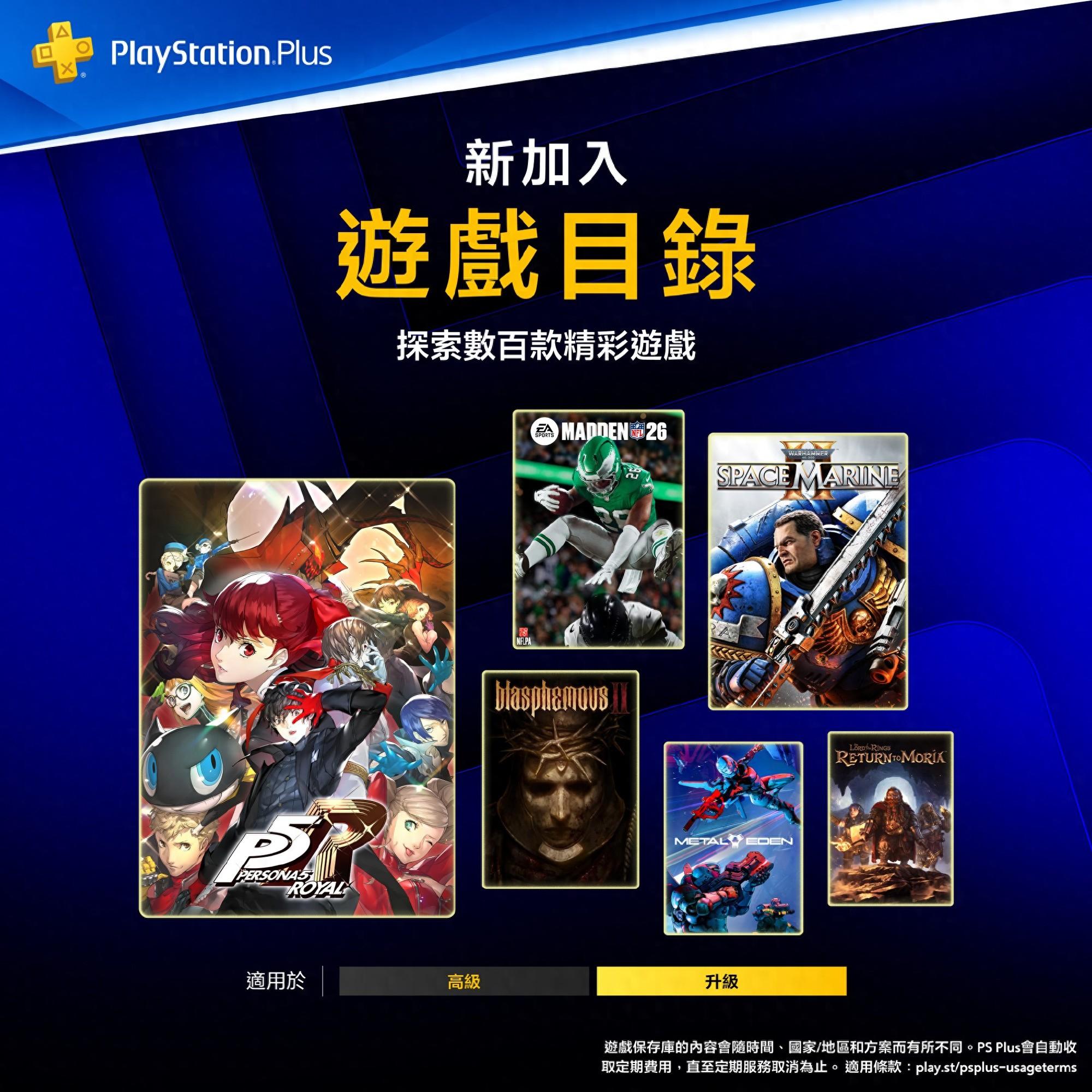索尼官方日前公佈了2026年3月二三檔PS+會員新增遊戲,其中就有PS5/PS4遊戲《女神異聞錄5皇家版》,PS5遊戲《戰錘40K:星際戰士2》等大作入庫,這裏ACG吐槽君feichenpan給大家分享一下索尼2026年3月二三檔PS+會員新增遊戲陣容。