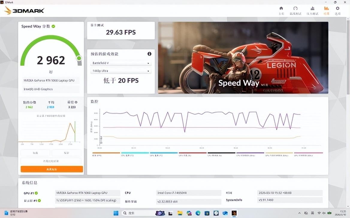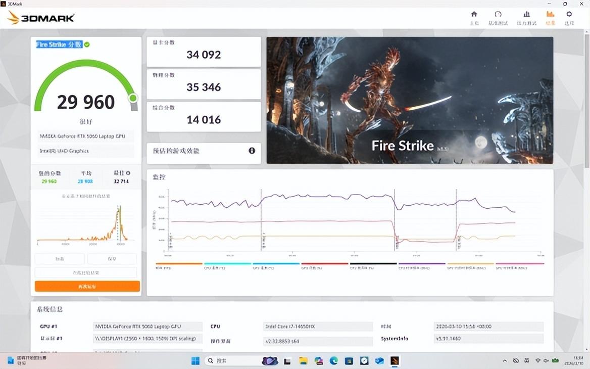 在常規的Fire Strike、Time Spy測試中,這臺GeForce RTX 5060遊戲本也是跑到了29960與12860的超高分數,位處3DMark兩項測試排行榜的中上游水平。從結果來預判,無論是應對那些DirectX 11的經典遊戲,還是支持更多現代化圖形技術的DirectX 12遊戲,這臺遊戲本都會有一個不錯的遊戲表現。