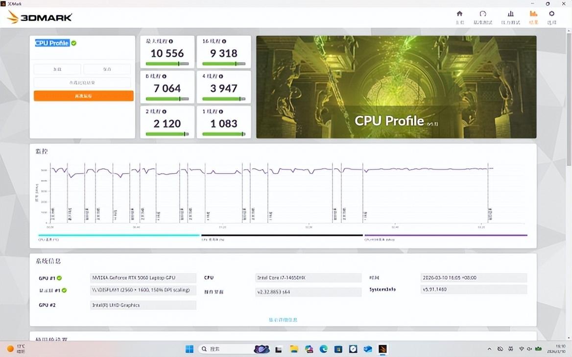 而在更注重處理器性能的CPU Profile測試裏,我們測試的這款GeForce RTX 5060遊戲本也憑藉着優秀的供電配置,讓這塊i7-14650HX的性能得以完美釋放。16線程與最大線程也還擁有不錯的超頻潛力,爲整檯筆記本留下了富餘的超頻空間,更適合那些硬核遊戲玩家以及硬件發燒友去折騰。