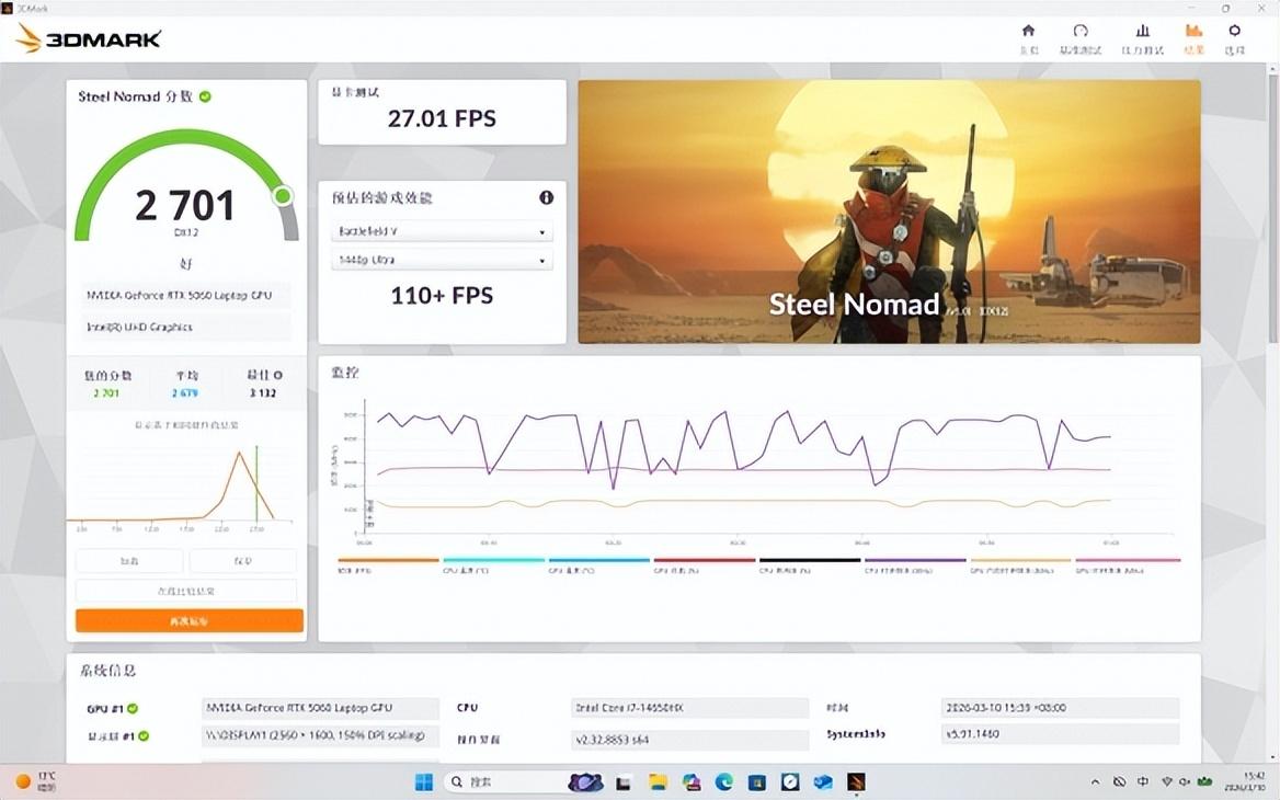 在坐擁了強大的CPU與GPU性能之後,無論是在光追場景下的Speed Way還是光柵場景下的Steel Nomad測試中,這臺搭載了GeForce RTX 5060 GPU的遊戲本跑出的分數也是衆望所歸,我們也不過多贅述,相信分數下面“好”的評價能夠說明一切。