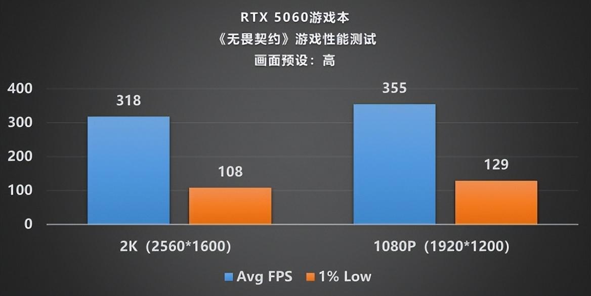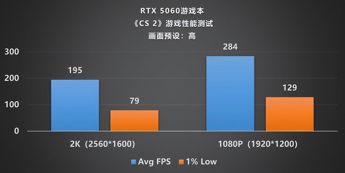 《CS 2》與《無畏契約》一直以來都是國內話題度超高的電子競技遊戲,不出所料,這臺GeForce RTX 5060遊戲本在兩個遊戲中的表現也相當出色,無論是在2K超高分辨率還是普通的1080P分辨率下,遊戲的幀率表現都依舊穩紮穩打,《CS 2》在2K下跑得接近200的平均幀率,在1080P畫質下更是跑出284幀的出色表現;《無畏契約》無論是2K還是1080P均已達到300以上,可以說完美符合電競級的幀率標準。