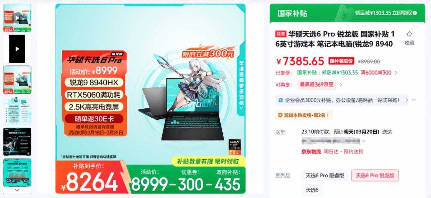 這臺機器同樣也推出了搭載AMD處理器的版本。銳龍版使用了AMD 銳龍9 8940HX處理器,16核心32線程加上80MB高速緩存,更加適合追求高幀遊戲的電競玩家。其餘配置與酷睿版一致,國補後價格來到了7385元,也是一個非常具有性價比的選擇。