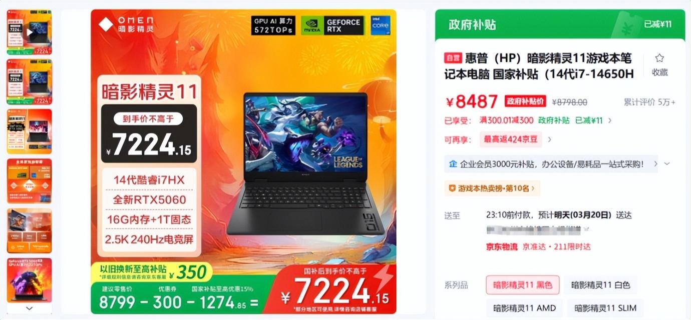 作爲老牌筆記本廠商的惠普旗下的暗影精靈11遊戲本,也是去年頗受關注的一款產品。它搭載了英特爾 酷睿i7-14650HX處理器和GeForce RTX 5060筆記本電腦 GPU,整機功耗來到170W以上,搭配自研的酷涼風暴Pro散熱技術,在保證充分性能釋放的同時,兼顧強悍散熱。屏幕支持240Hz高刷和500nits高亮度,搭配VRR可變刷新率技術和3ms極速響應時間,以及惠普自研的多項專利技術,絕對能夠滿足從學習到工作的長期使用需求。國補後7224元的價格,同樣極具競爭力。