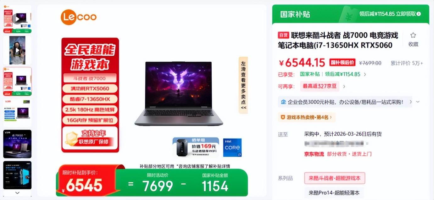 去年憑藉超高性價比受到廣泛關注的聯想來酷鬥戰者戰7000筆記本,想必直至今天依舊躺在不少玩家的購物清單裏。它搭載了英特爾 酷睿i7-13650HX處理器115W滿功耗的GeForce RTX 5060筆記本電腦 GPU,三風扇加多維貫穿式風道爲整機帶來出色散熱表現,國補後到手約6545元的價格