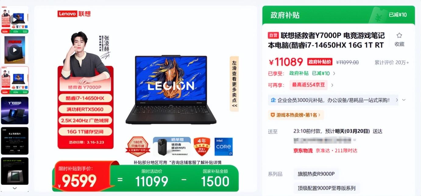 同代的拯救者Y7000P則搭載了英特爾 酷睿i7-14650HX處理器,採用16核心24線程,理論單核睿頻5.2GHz,最高可以帶來125W的桌面級性能釋放,無論是日常充當生產力工具還是拿來打遊戲,都是非常不錯的選擇。目前補貼後9599元的價格,對於追求高端處理器性能的玩家,可以重點考慮。