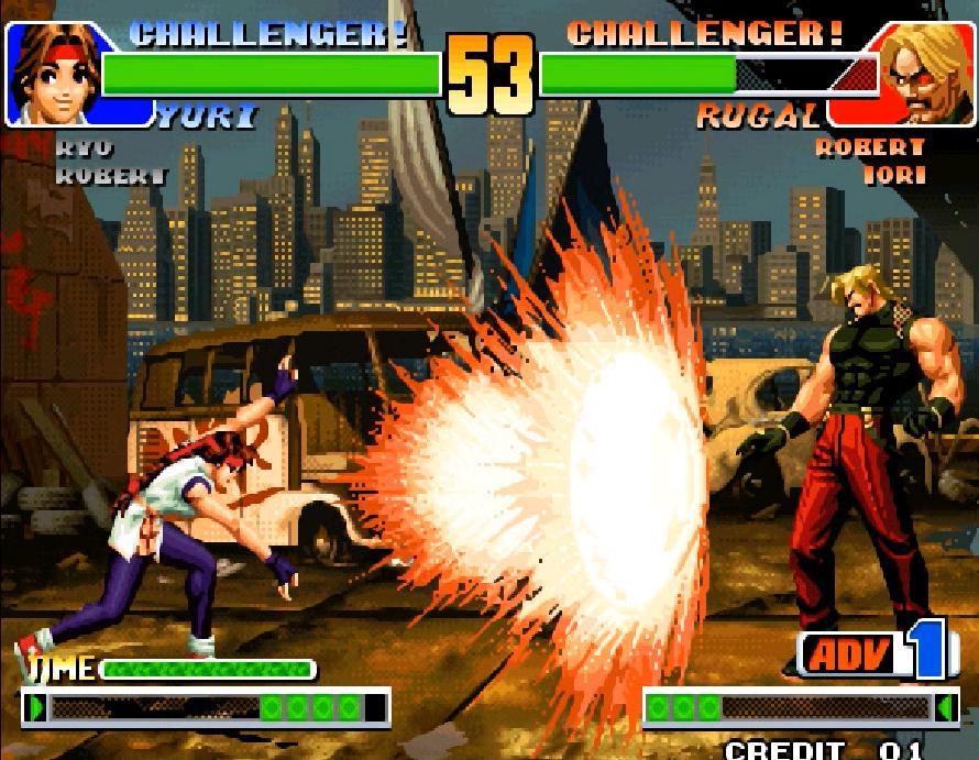 CAPCOM這邊也不甘示弱,在《CVS》這邊讓殺意隆對上了坂崎百合,然後波動拳直接秒殺霸王翔吼拳。