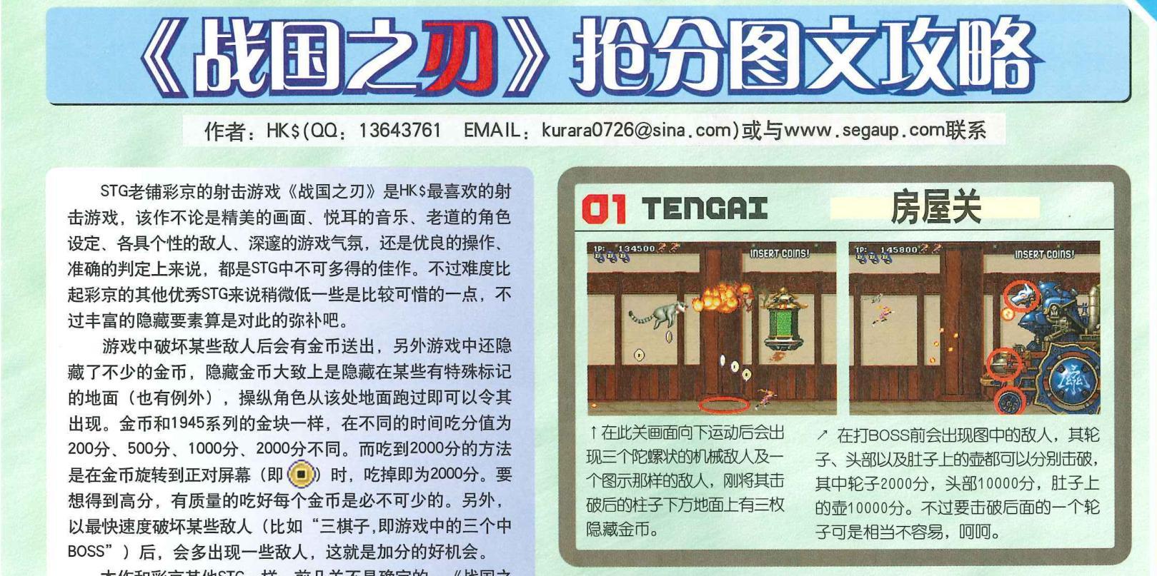 《電子遊戲軟件》這篇文章的作者叫HK$,這麼多年過去了,聯繫方式居然還在。只是時過境遷,不知道如今這位老大是否還在從事相關工作。其中詳細介紹了《戰國之刃》貪分的心得。