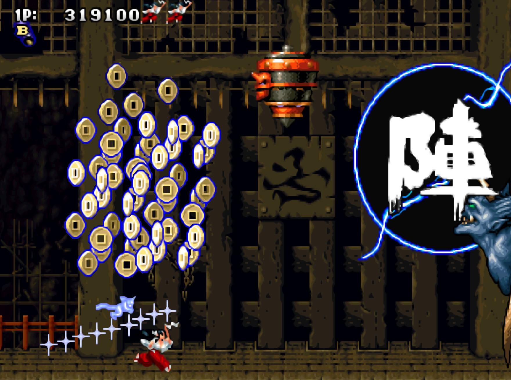 遊戲獎命的分數60萬左右,基本上到了第四關都能獎命。遊戲獎命的機會只有一次,比較可惜。普通玩家應該不敢爲了喫金幣而冒險吧!畢竟並非所有的人都能在子彈中游刃有餘。