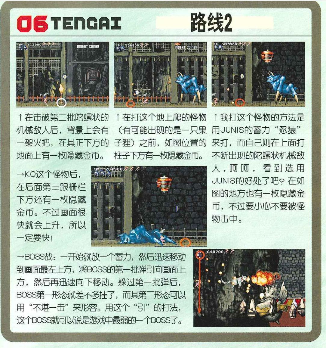 《電子遊戲軟件》中詳細記載了第二路線的隱藏位置。並且對精英怪的打法也有詳細的描述。基本上只要按照雜誌上的操作都萬無一失,能夠將金幣分數最大話。