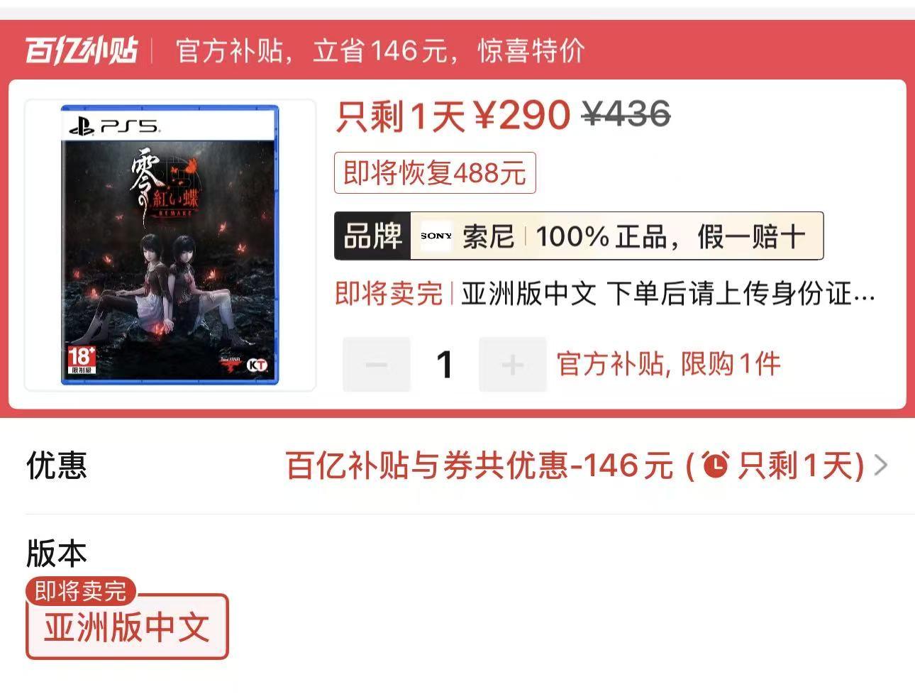 3.PS5亞洲版中文遊戲《零:紅蝶 重製版》290元全新包郵