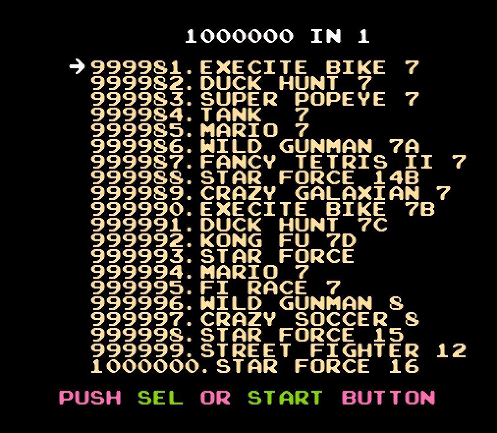 後期那些盜版商爲了糊弄人,推出了999in1、9999in1,甚至後期直接來了一個8888888in1、9999999in1,很多不明所以的玩家看到這麼多遊戲直接高價購買了。