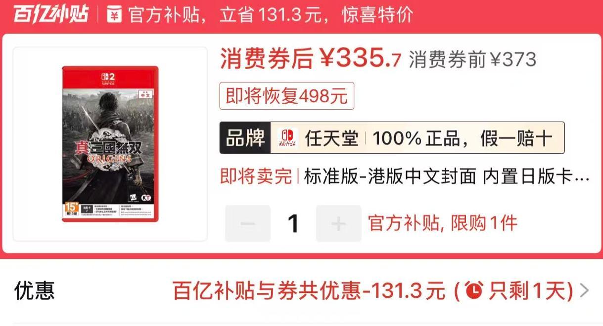 NS2港版中文《真三國無雙:起源》335.7元全新包郵(鑰匙卡)