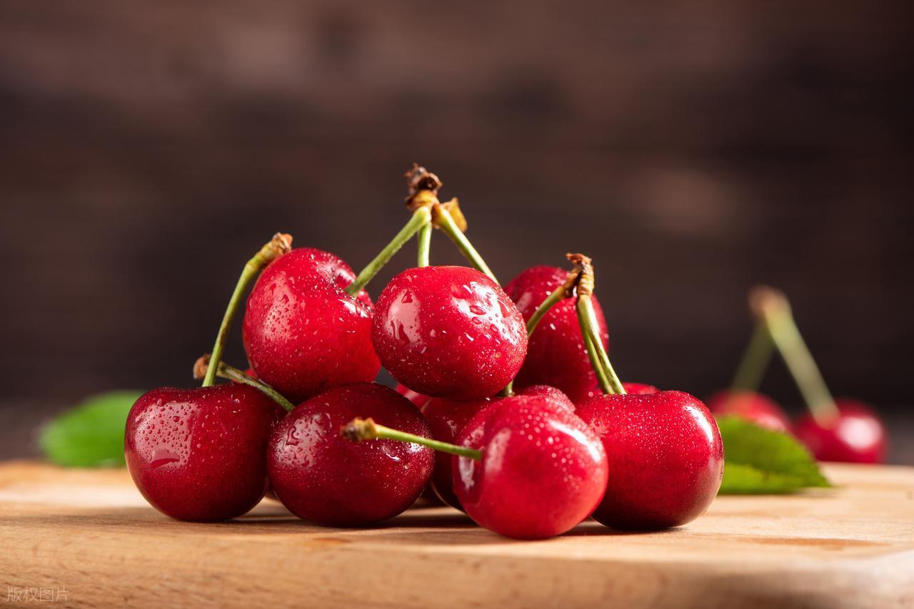 櫻桃含有維生素A、維生素E及鉀、鎂等礦物質,維生素A對胎兒視力發育有益,鉀元素能幫助孕婦調節血壓,緩解孕期水腫和疲勞。