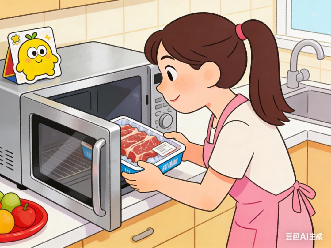 這可能是目前家中用時最快,操作也最方便的解凍方法。現在很多微波爐都有專門的解凍功能,只需要把要解凍的食物放進去,然後設置好時間,一按即可。