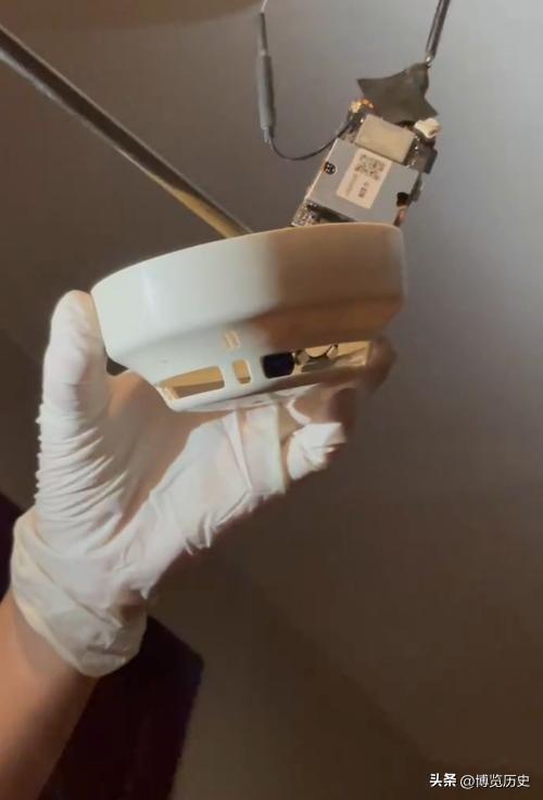一個外觀完好的煙霧報警器被拆開後,裏面赫然藏着一套完整的針孔攝像模組,鏡頭、主板、天線一應俱全。