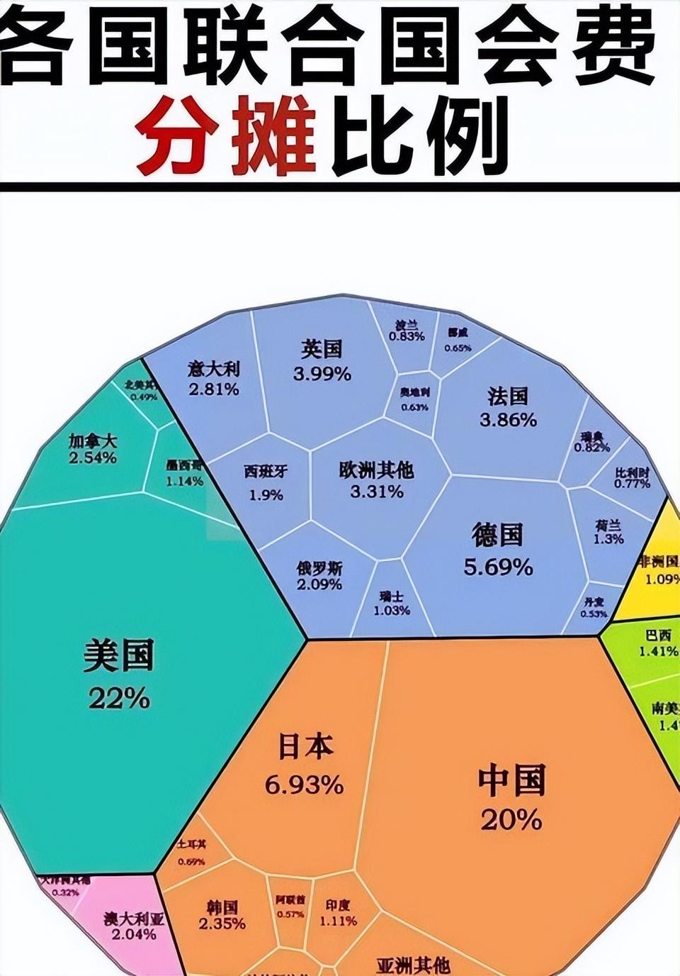 美國作爲常規預算最大分攤國,佔比22%,累計欠費超過22億美元,包括2025年部分和以往積欠。