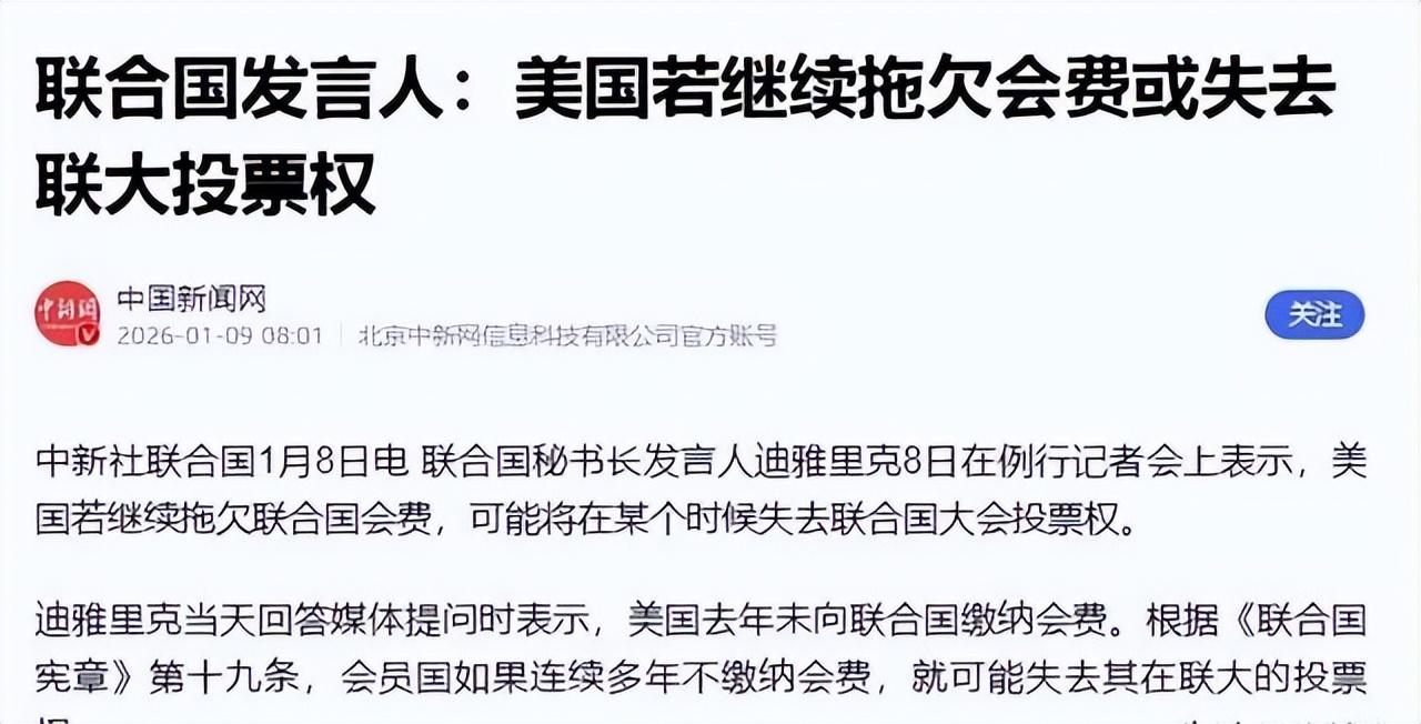 美國欠的錢佔了大頭,總共22億美元左右,包括過去欠的14億和2026年的7.67億。2025年,美國基本沒付常規預算的會費。特朗普第二任期剛開始,就在2025年1月上臺後,砍了聯合國預算和維和資金。2026年1月7日,他簽了份命令,直接讓美國從66個國際組織退出,其中31個是聯合國相關的。像婦女署、人口基金、氣候變化公約這些,都在名單上。美國政府說,這些組織浪費錢,還損害國家利益。