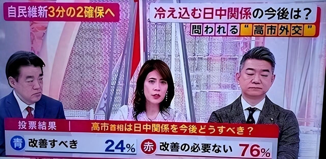 富士電視臺在開票當晚搞了個觀衆調查,問高市早苗接下來怎麼處理對華事務。結果出來,大部分觀衆選了沒必要改善關係這個選項。這個調查通過節目互動方式收集意見,觀衆用手機或遙控參與。節目裏評論員看到數據後表現出驚訝,橋下徹閉眼搖頭,畫面在社交平臺流傳開來。富士電視臺觀衆多偏向右傾,這點影響了數據解讀,但也反映出部分民衆心態。