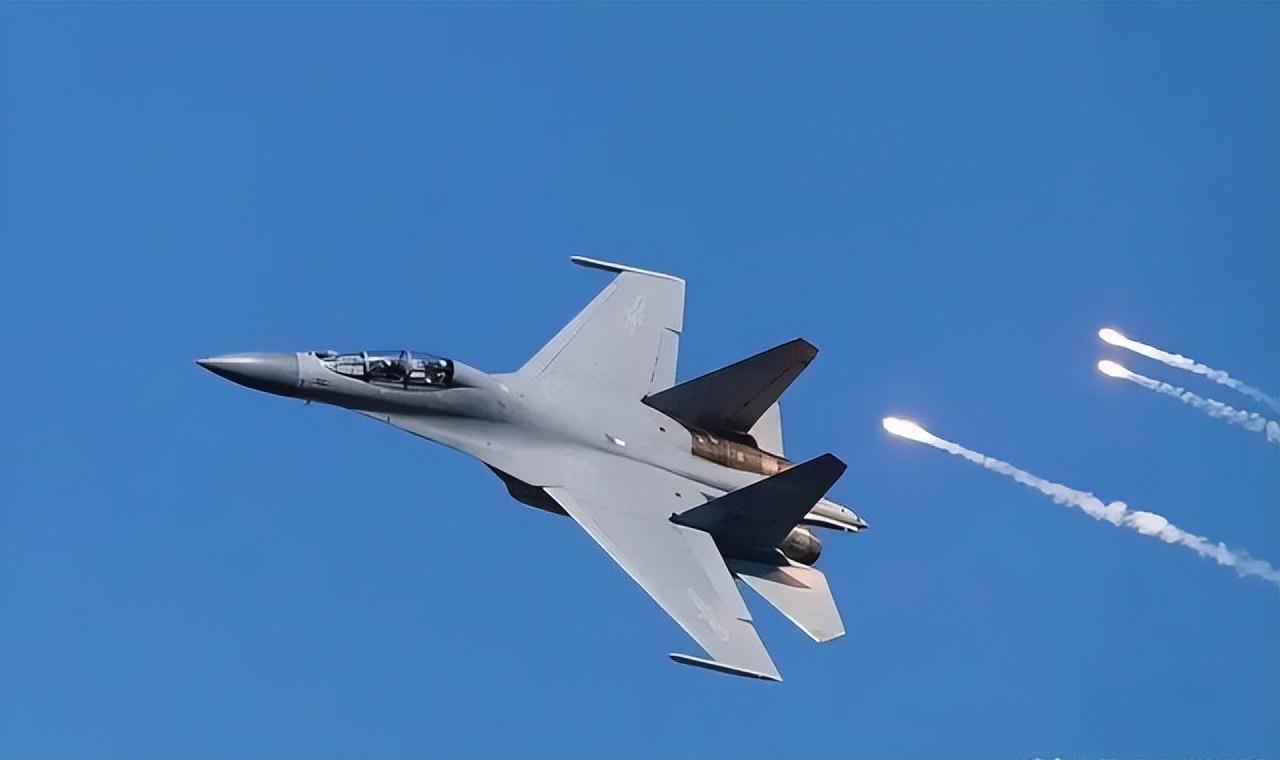 第一次接觸就在海峽中線附近,殲十六直接從機腹位置放出紅外干擾彈。彈藥在空中散開熱源,直接干擾了F-十六V的傳感器。臺軍戰機當時只能趕緊調整航向,脫離了接觸範圍。