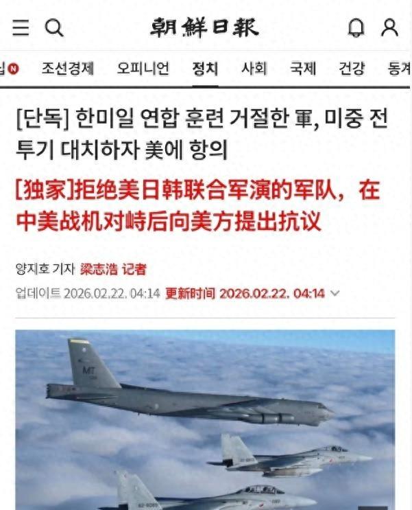 韓方爲什麼這麼快翻臉呢?因爲這次行動碰到了韓方最擔心的點。美軍單獨行動,沒有把挑起對峙的意圖提前說清楚,韓方覺得這會直接把中韓關係拖進麻煩。韓國政府一直希望在地區事務上保持自己的節奏,不想因爲盟友的單邊舉動就被捲進去。2月18日同一天,還有其他美軍轟炸機在附近海域活動,從南邊訓練後北上進入黃海區域,這讓整件事顯得更有連貫性。韓方此前已經拒絕了美方關於三國聯合空中演習的邀請,那次演習後來只剩美日雙方進行,時間也正好重合在16日和18日。