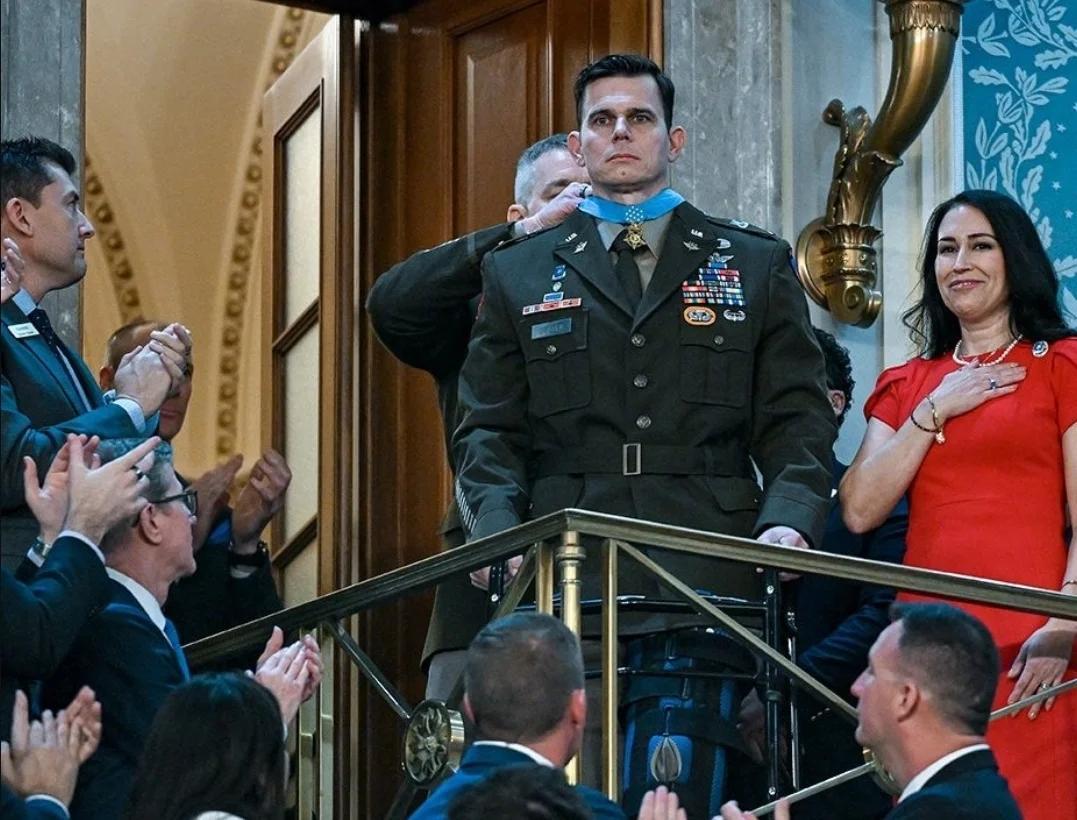 2月24日,特朗普前往國會,開始本年度的國情諮文演講。在演講前,他首先爲美國陸軍航空隊第幺六零航空團的飛行員埃裏克·斯洛弗,頒發了榮譽勳章。這位飛行員之所以能或此殊榮,就是因爲他在綁架委內瑞拉總統馬杜羅的“堅定決心”行動中,發揮了至關重要的作用。