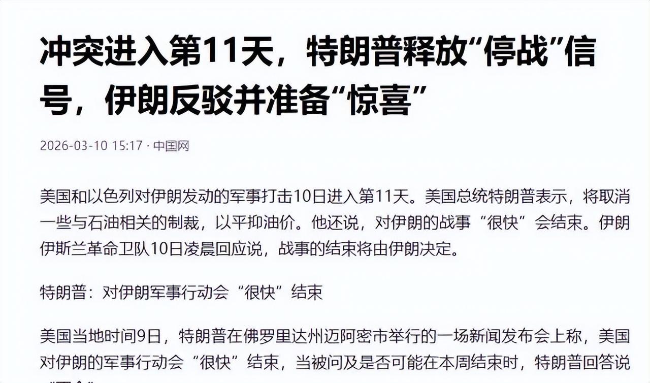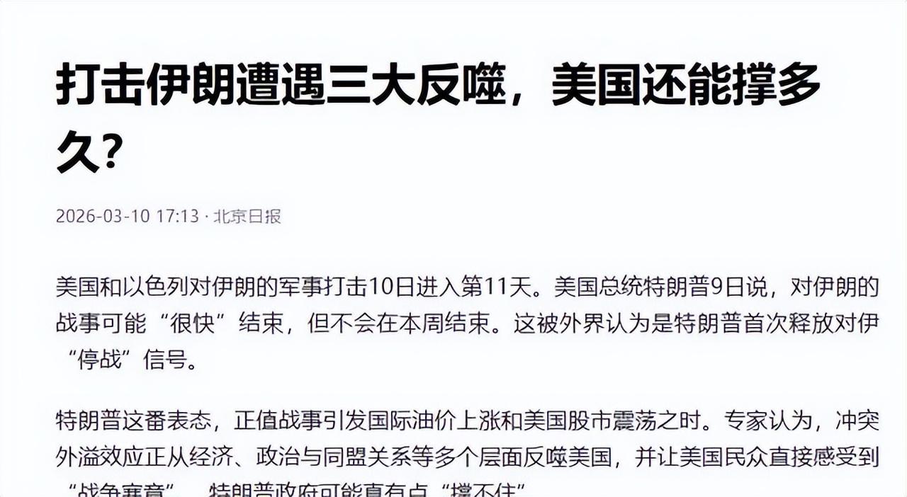 特朗普此時釋放戰爭接近結束的信息,既是爲了穩定市場情緒,也是爲國內政治環境減壓。畢竟,持續高油價和軍事開支會給執政帶來挑戰,他需要向民衆展示行動已取得成果。