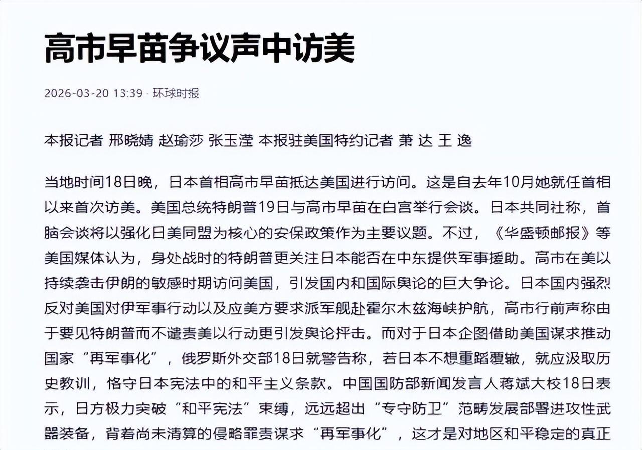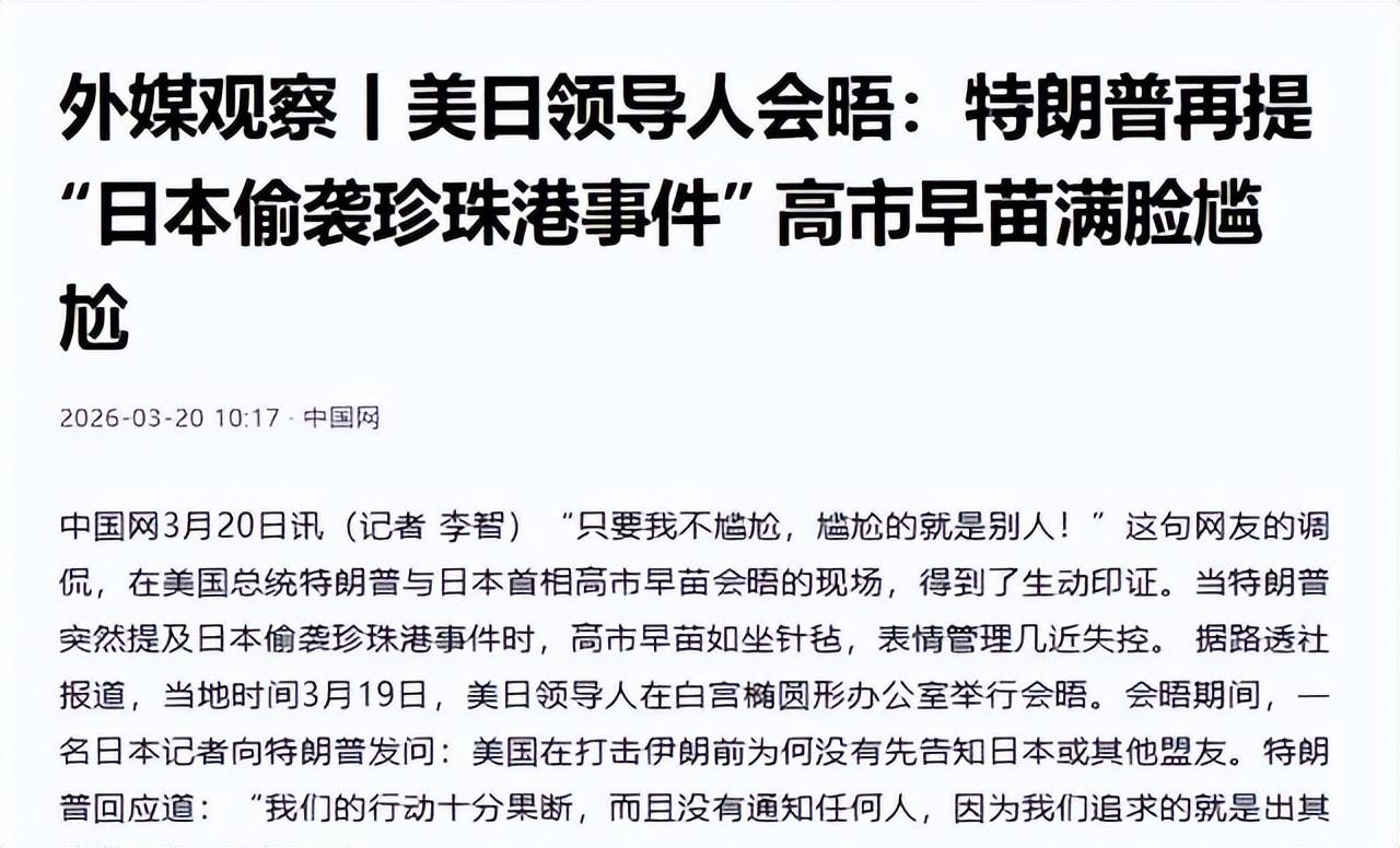 2026年3月19日,美國總統特朗普和日本首相高市早苗在白宮見面談了一圈事兒。會談結束後雙方直接放出聲明,說臺海地區的和平穩定對整個周邊安全和全球運行來說缺不了,還強調不能讓任何一方靠武力或者其他強壓手段單方面去改動現在的格局。這話寫得明明白白,等於把立場擺到了桌面上。