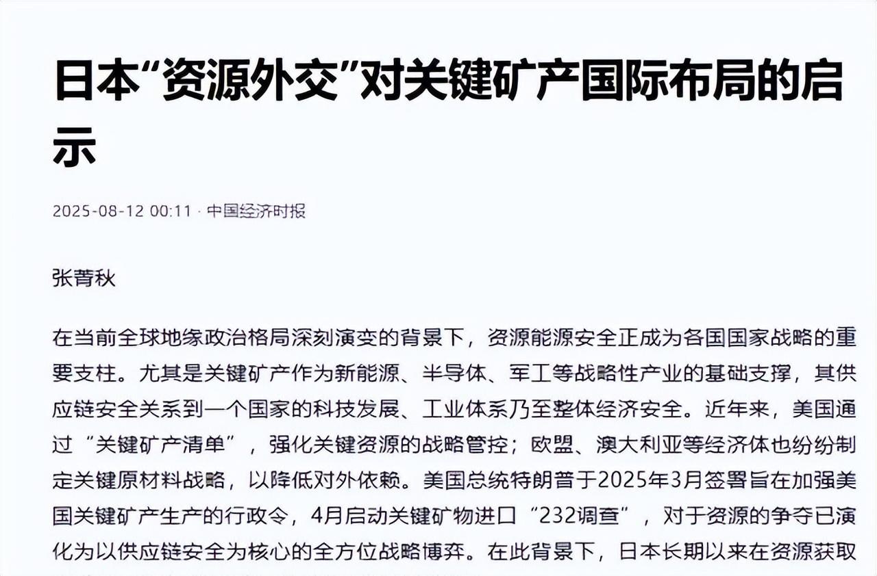 整個過程裏,美日把資源合作當成了經濟安全的重要抓手,計劃涉及的生產和開發安排,都是爲了讓供應鏈更穩。深海合作那部分也寫進了備忘錄,打算成立工作組來推項目。礦產行動計劃從宣佈那天起,就成了兩國下一步合作的重點方向。