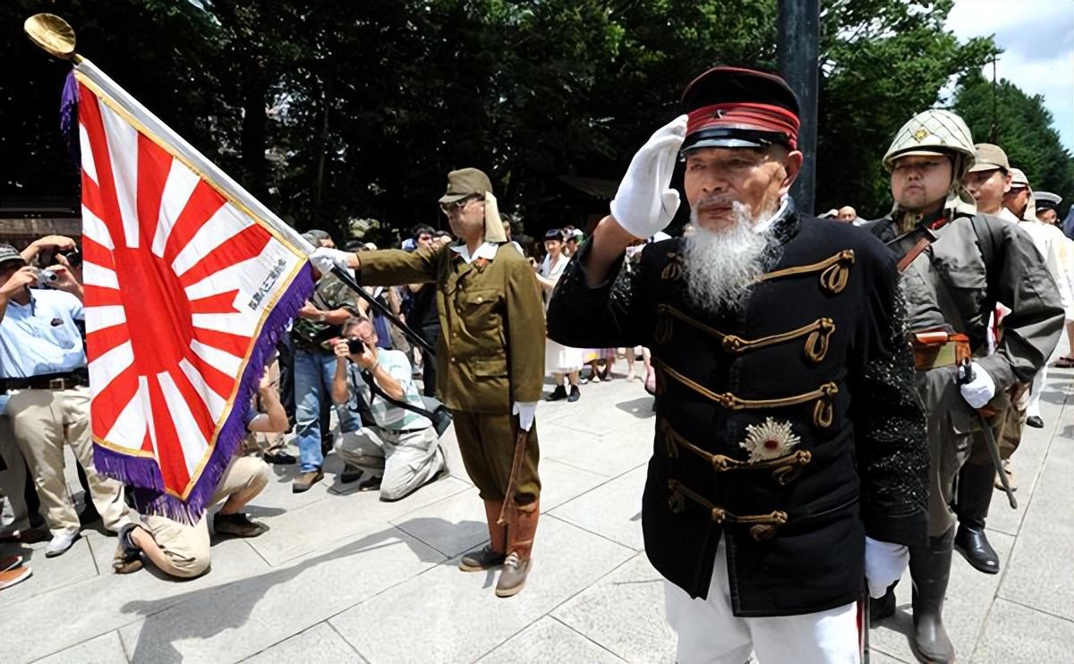 這一點,從日本自衛隊內部深層次的右翼符號,也能可見端倪,儘管日本國憲法明確表示,日本的國家機關公務員不得從事宗教活動,但日本自衛隊,尤其是陸自,一羣現役將官要麼獨自組團,要麼拉上一大堆徒子徒孫,在所謂的“非公務時間”,穿着整齊劃一的“非正式服裝”,組團前往靖國神社參拜,以這種所謂的私人名義,來鑽日本法律的空子。