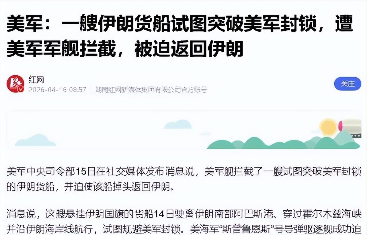 事情還得從美軍這次封鎖行動說起。2026年4月13日上午10點,美軍中央司令部正式下達命令,對所有進出伊朗港口的船隻實施全面封鎖。注意,這裏說的是"所有",不是隻針對伊朗自己的船,而是但凡跟伊朗港口沾邊的船隻,統統攔下。不管是掛伊朗旗的貨輪,還是第三國的商船,只要航向指向伊朗港口,或者剛從伊朗出發,一律不放行。