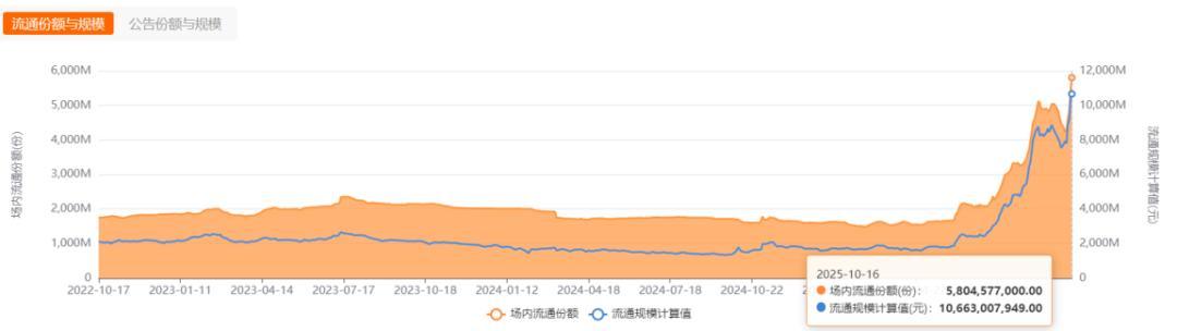 從市場表現看,該ETF從本輪低點以來(4月中)累計上漲超70%,同時良好的賺錢效應吸引了大量資金湧入。